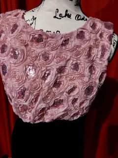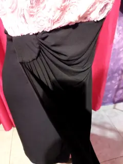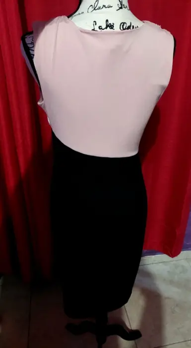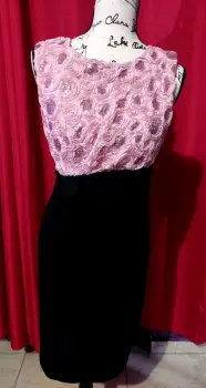 Bonito Vestido tierno, con diseño asimétrico, entre rosa y negro, tiene costuras sobresalidas en forma de flores y lentejuelas, es de licra, totalmente nuevo, sólo que estaba guardado y no tiene etiqueta, no tiene detalle, tiene en la parte de la falda cómo abierta, está muy coqueto. Medida de axila a axila 88 cm sin estirar estirando 50 en circuferencia, de hombro a largo 102cm.