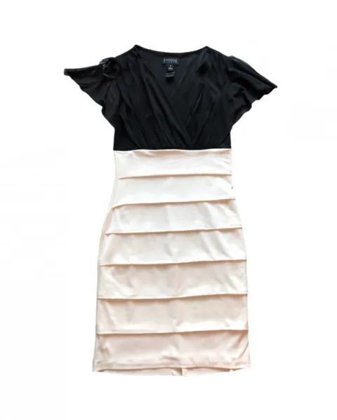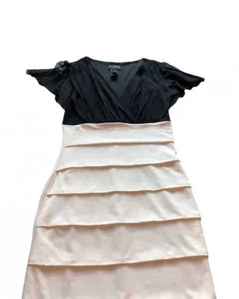 Vestido blanco un negro súper fashion con segmentos en la parte blanca que realzan la figura, los hombros con lindos detalles de transparencia. Te encantará!!