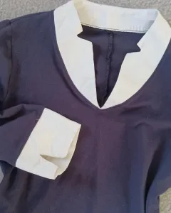 Precioso vestido azul marino con cuello tipo camisa blancaQueda entallado al cuerpo arriba de la rodilla se ve súper lindo con tenisSe envía en caja recicladaEl color es parejo y muy vividoAceptan ofertas