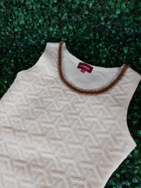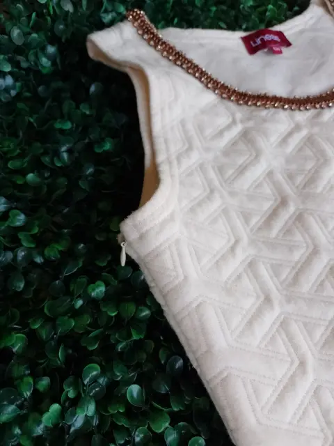 Vestido blanco, tela gruesa, de la marca Líneas.Queda a XS o S