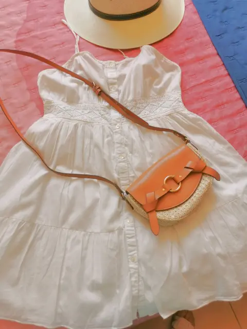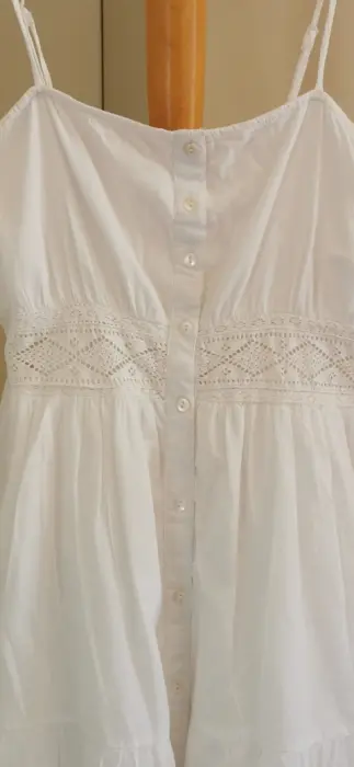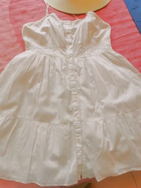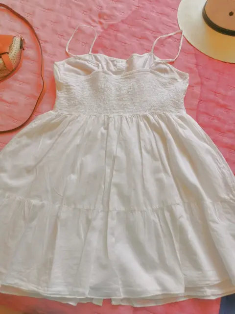 Vestido entredoses (stradivarius). Moderno vestido corto de verano, color blanco, tirantes ajustables, talla grande, entredoses al frente