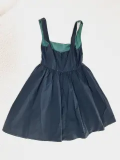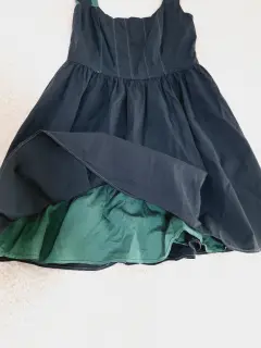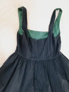 VESTIDO ESCOTE CUADRADO Talla Mediana, ampón, color verde botella con forro, sin detalles.MedidasDe axila a axila 84cmCintura 76cm (no estira)Largo 80cm