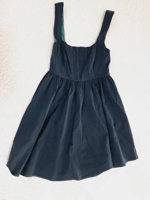 VESTIDO ESCOTE CUADRADO T M. VESTIDO ESCOTE CUADRADO Talla Mediana, ampón, color verde botella con forro, sin detalles.MedidasDe axila a axila 84cmCintura 76cm (no estira)Largo 80cm