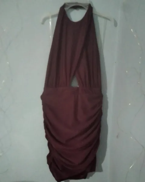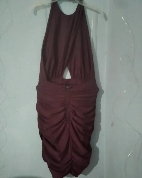 Vestido espalda descubierta. Vestido vino con espalda descubierta y corto