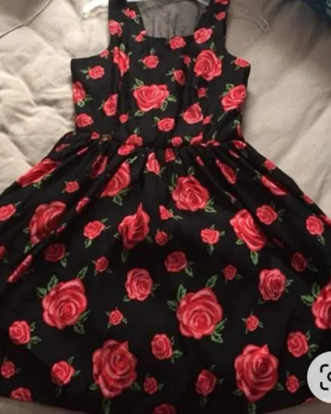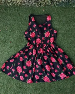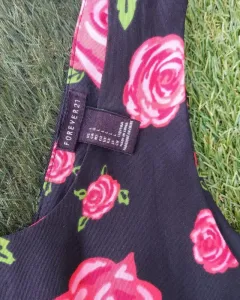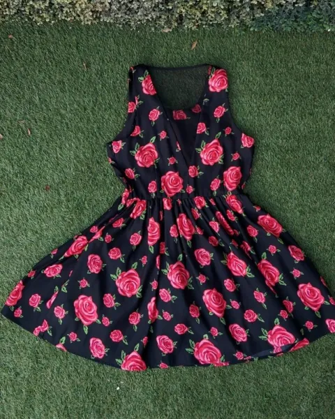 Hermoso vestido corto y estampado de flores, arma una bonita figura. OJO: No incluye cinturón y es talla L pero viene reducido, yo considero que para una talla S, no estira y tiene el cierre por un costado.