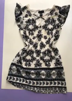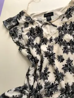 Vestido corto casual.Estampado precioso, ningún detalle.Tiene tipo forrito.Es muy fresco y cómodo