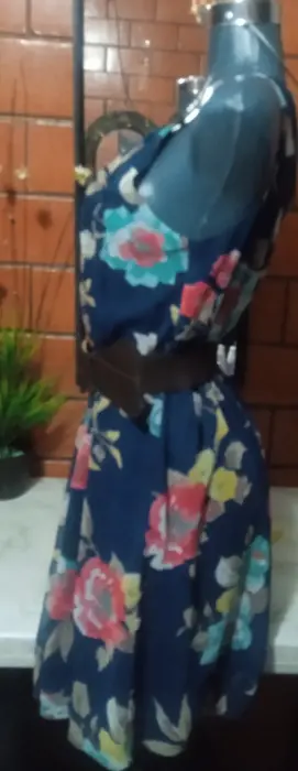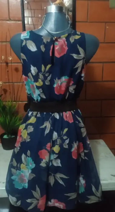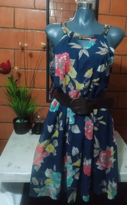 Vestido estampado de temporada talla mediana, tela ligera, llega a la rodilla, detalle de gargantilla dorada, marca vertiche ,sin detalles está en perfecto estado 👌