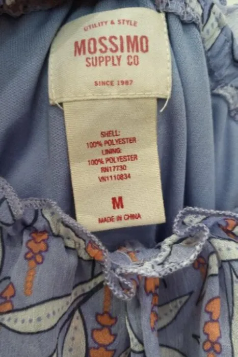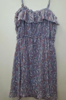 Vestido de tirantes estampado marca Mossimo.El color es lila clarito con estampadoblanco y naranja.Tiene olán en la parte superior y resorte en la cintura.Es cortito.Talla M.Medidas aproximadas 40cm de axila a axila(sin estirar), 30cm de cintura (sin estirar)y 69 cm de largo.*TODAS MIS PRENDAS SE DESINFECTAN CON LYSOLLAVANDERIA PARA TU MAYOR TRANQUILIDAD*