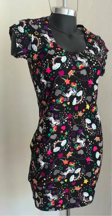 Vestido estampado de unicornios. Padrísima vestidito básico con estampado de unicornios talla grande es nuevo única prenda ya se subió rebajado por lo cual es precio fijo por la comisión de la app que no te lo ganen horma padrísimo