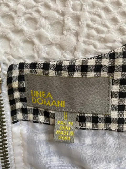 Vestido estampado en mascota blanco y negro.. Vestido fresco sin manga con bordado de bisutería en cuello. Estampado en mascota blanco y negro, mide 85 cm de largo, 44 de busto y 49 de cadera.Talla 8.