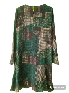 Vestido estampado multicolores. Talla s , puede quedar a talla m va olgado, extracto como a la foto, tela semitransparente, requiere fondo