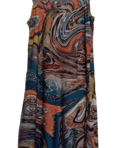 Vestido estampado stretch.. Hermoso vestido verde de tela strech, bonita caída y hermoso estampado. Con detalle tejido en espalda y escote. Llega a media pantorrilla. Es tela fresca.