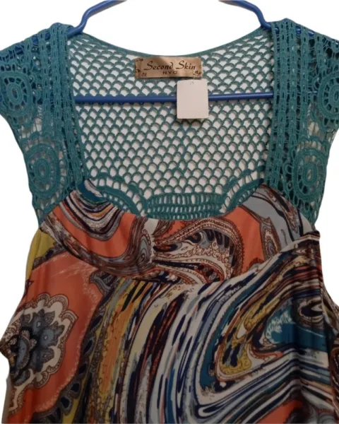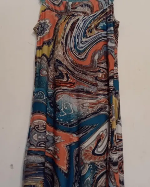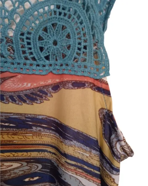 Hermoso vestido verde de tela strech, bonita caída y hermoso estampado. Con detalle tejido en espalda y escote. Llega a media pantorrilla. Es tela fresca.
