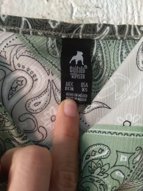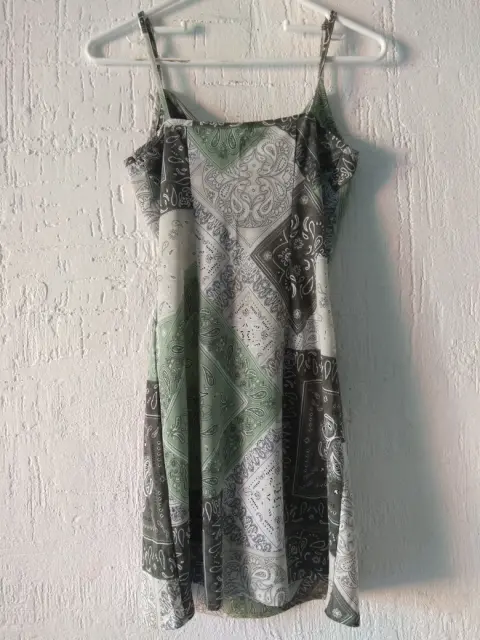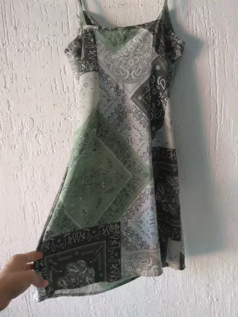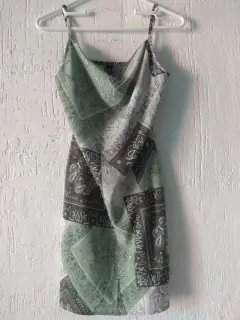 Vestido estampado verde tipo paliacateMarca : Cuidado con el perroTalla XSCintura : 80 cmCadera : 96 cmLargo : 78 cmLa tela no estiraEn perfecto estado, usado una sola vez. No tiene detalles