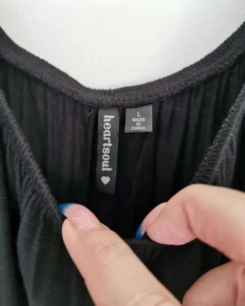 Vestido estilo campesino Heart&Soul. Vestido nuevo estilo campesino de tela tipo camiseta. Color negro. Corte en A. Cuello zurcido con elástico. Mangas acampanadas con zurcido y elástico arriba del codo, acabado en bordado. Talla L pero es muy amplio.