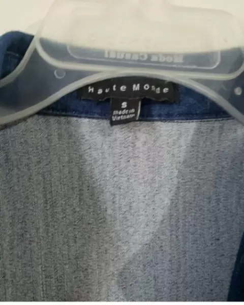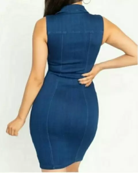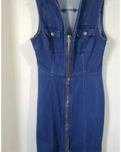 Lindo vestido estilo mezclilla sin mangas marca Haute Monde, en talla S, con cierre delantero, estira bien y se amolda muy bien al cuerpo