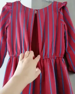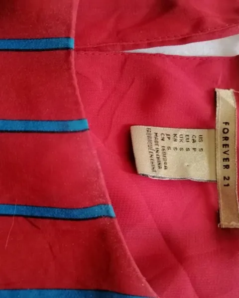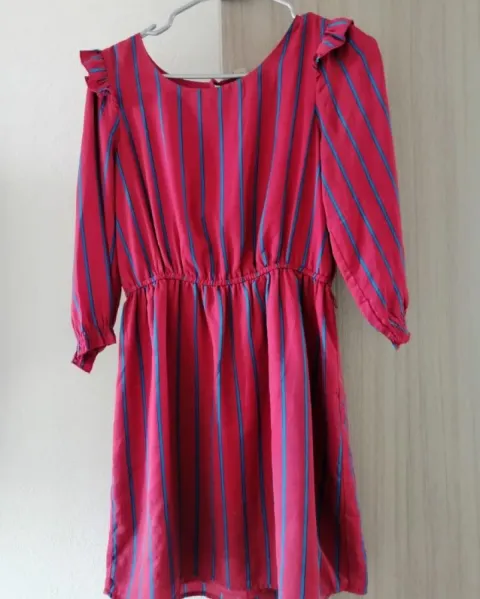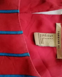 Vestido F21 suave, fresco y hermoso. Rojo quemadito con rayas azules, no es estridente, la cobinación es prevciosa, la tela suave y ligera, tiene forro y detalle en la espalda con avertura sin abrirse al caminar; con tenis o flats se ve hermoso.