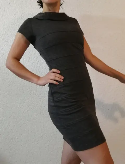 Lindo y sexi. Vestido ajustado gris oxford. Super cómodo, la tela es stretch. Talla Ch. Los cortes horizontales le dan forma y disimulan el abdomen. Para sentirse sexi y con estilo al mismo tiempo.Usa el cupón VEST10 para un 10% de descuento adicional.