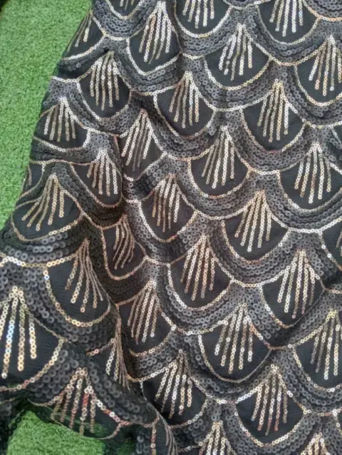 Hermoso vestido de lentejuelas doradas con negro ideal para cualquier ocasión especial manga 3 Cuartos