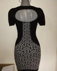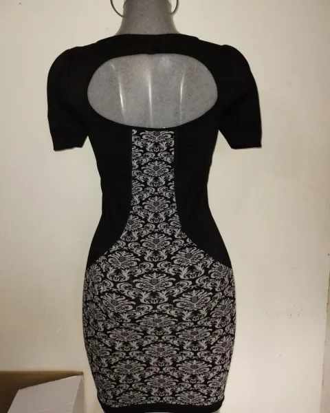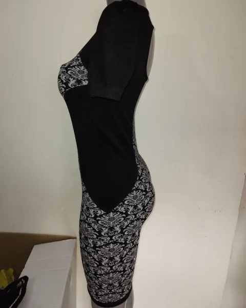 Vestido pegaditoCon detalles de floresColor gris/ negroManga 3/4Cuello Redondo