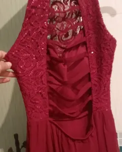 Bonito vestido fiesta/ noche talla 3 es extra chico muy lindo se ve rojo en la foto pero es color vino