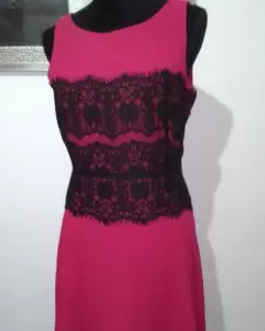 Vestido fiusha con negro loft.. Vestido fiusha con encaje negro está nuevo con etiqueta, trae forro,tela 100%polyester.Ancho espalda 36cm., Contorno pecho 94cm.,cintura 74cm.,Largo 91cm