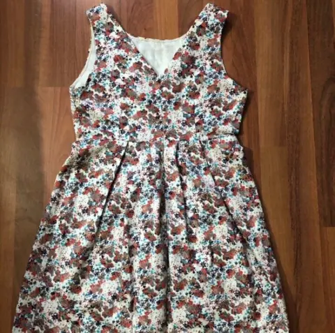 Vestido floral casual. Bonito vestido floral casual, talla mediana, corto, sin mangas, con forro por dentro