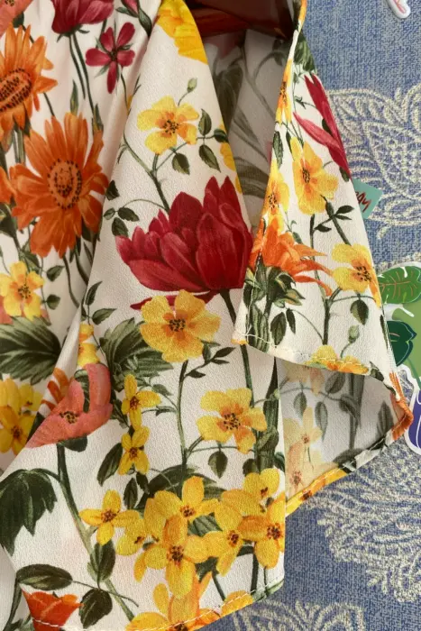 Vestido floral con mangas descubiertas, marca Julio, por el tipo de corte tiene una caída muy linda, el amarre es por la parte de adentro del vestido para posteriormente salir por un costado y poder hacer el moño amarrado por fuera, tal como se muestra en las fotos, talla 12, largo 90 cm, medidas axa 55 cm