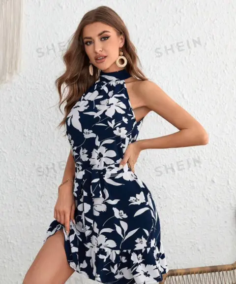 Vestido floral Shein. Vestido floral, muy fresco, azul marino, talla XS