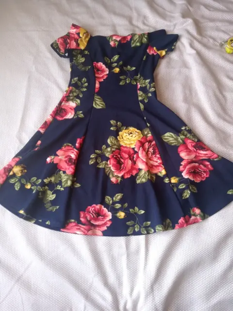 Vestido floreado corte princesa, la tela estira y se amolda al cuerpo. Se acomoda a los hombros. Mide de largo 80 CM y es muy comodo