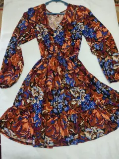 Vestido floreado elástico en la cintura talla mediana queda ala rodilla
