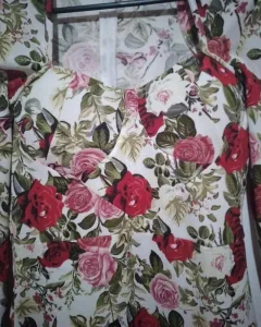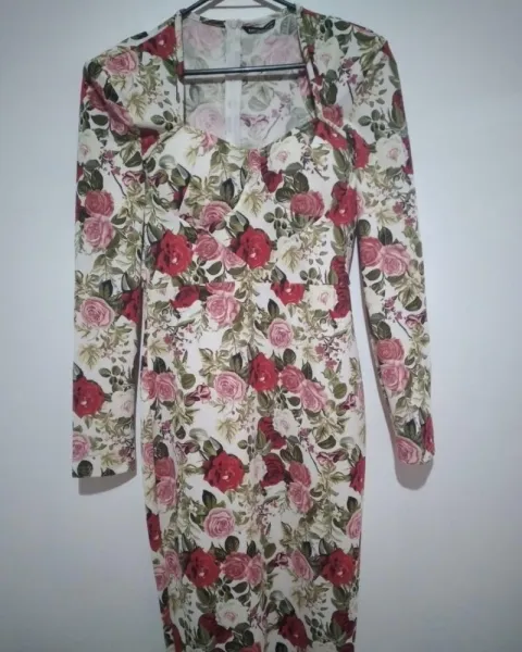 Vestido floreado. Vestido con estampado floral, con hombreras, casi llega al tobillo