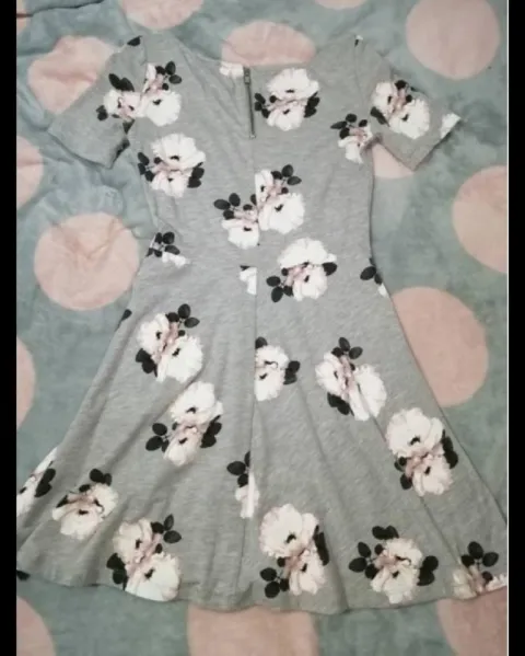 Vestido floreado. Vestido floreado color gris con rosa, con manga corta, tela de algodón, se ve muy lindo puesto