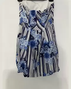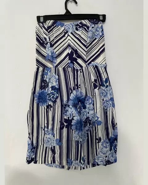 Hermoso vestido corto floreado color azul con blanco, es corto, talla 5