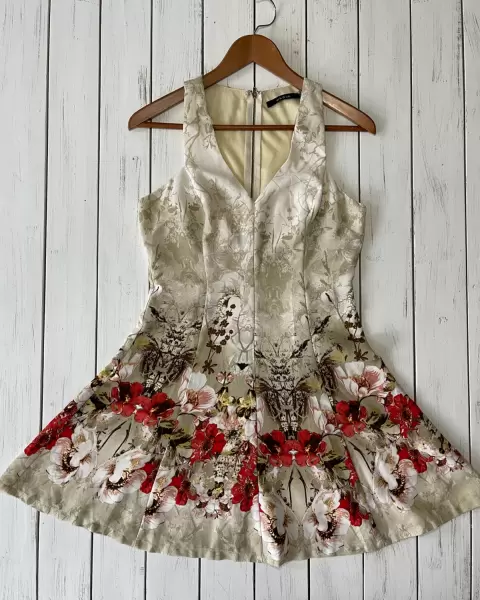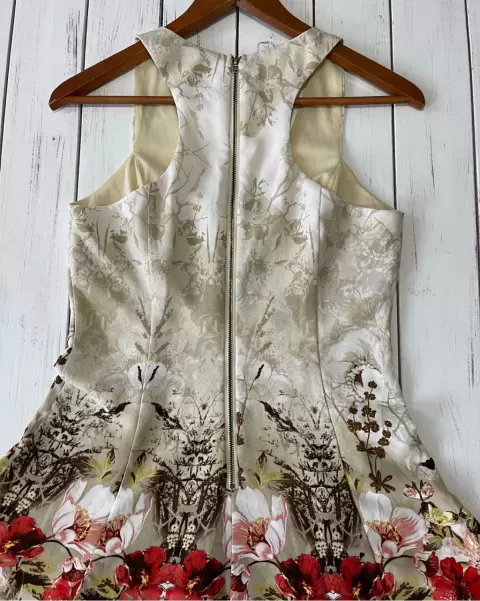 Vestido floreado Ark & Co. Vestido sin mangas y con escote cuello en V. Talla: S. Tiene cierre trasero. Cuenta con forro. El vestido no estira. Medidas: 42.5 cm de axila, 37 cm de cintura y 82 cm de largo.