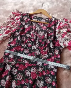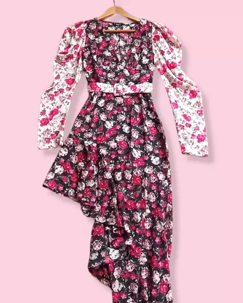 Hermoso vestido floral asimétrico 💖✨Medidas exactas en fotos 📷El diseño es muy único es tipo asimétrico, la tela no estira es fiel talla 🙌🏻💖La prenda es muy preciosa y única, se ve muy elegante y te hace figura de reloj de arena 😍😍Talla S☑️Incluye cinto