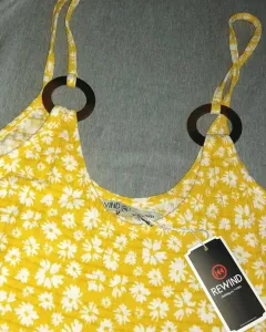 Vestido de tirante holgado, con estampado de flores y tela acanalads, corte arriba de la rodilla87cm largo (desde tirante)38cm cintura.*Envío al tercer día de tu compra*