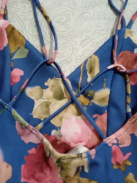 Vestido floreado de tirantes. Talla extra chica, con escote en la espalda, falda circular, largo de la cintura a la pierna de 43 cm