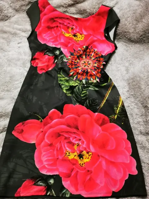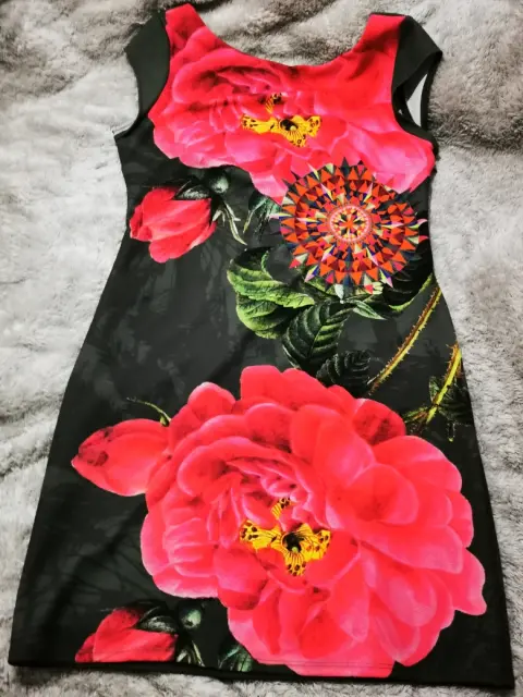 Vestido floreado Desigual. Vestido marca desigual usado una ocasion color verde militar con flores rosas color fucsia en la parte de enfrente la tela estira un poco- EL PRECIO ES EL FINAL, POR FAVOR REVISEN BIEN LOS DETALLES DE LA PUBLICACIÓN 😊