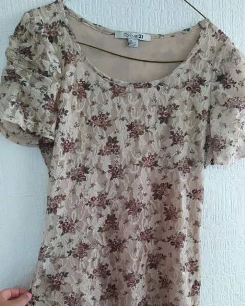 Vestido floreado forever 21. Tiene detalle, se desgarró el encaje de hasta abajo (ver última foto), pero no se nota à simple vista