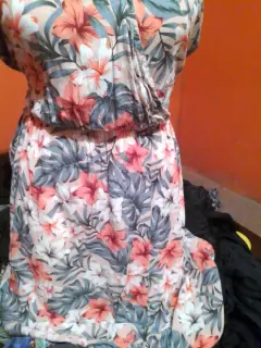 Es un vestido fresco floreado solo tubo una puesta prácticamente está nuevo sin detalles con resorte en la cintura llega hasta la rodilla