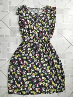 🖤hermoso vestido floreado color negro de tela súper fresca y estirable. Unitalla, llega a la rodilla
