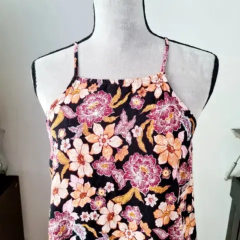 Vestido floreado tirantes. Vestido con tirantes ajustables y escote en la espalda, tela delgada y fresca, la etiqueta dice XL pero considero que va más a una LSus medidas son:Busto: 47 cmAncho: 49 cmLargo total: 83 cmArmo paquetes y te ofrezco mejor precio 😀 📦