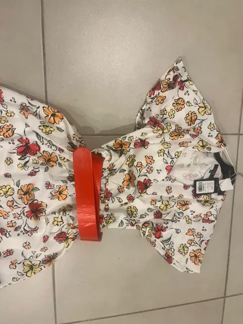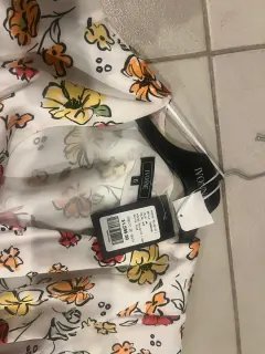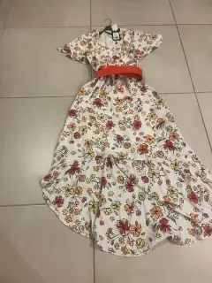 Vestido flores. Vestido blanco con flores, naranja, amarillo y negro, es ideal para la playa o fiesta de jardín.