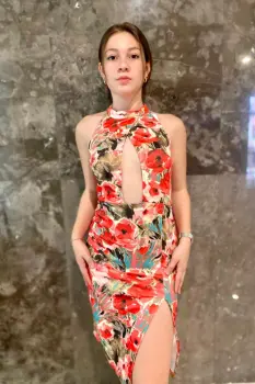 Vestido flores con abertura. Esta muy lindo, se ajusta muy bonito al cuerpo. Tiene abertura en el pecho y en la pierna.Disponible en talla Ch,M y G