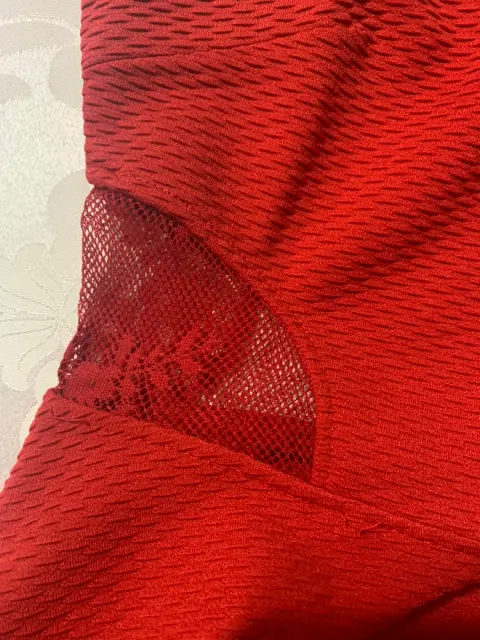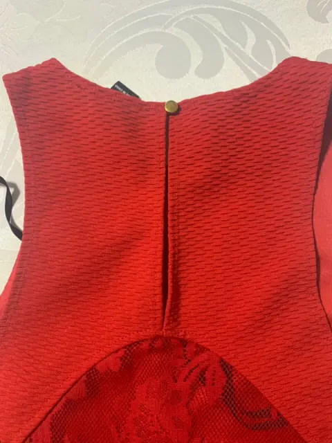 Vestido sin mangas, corte princesa, encaje en los costados y en parte de la espalda. Tela con strech.Medidas/ busto: 36 cm, cintura: 31 cm, largo: 80 cm.