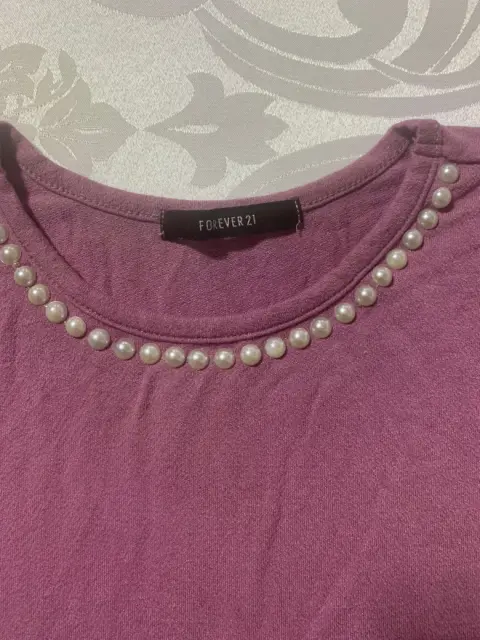 Vestido Forever 21. Vestido corte lápiz, con decorado de perlas en el cuello, corte inferior ovalado. Tela con strech, transparenta un poco.Medidas/ busto: 36 cm, cintura: 33 cm, largo: 95 cm