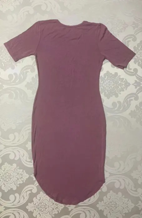 Vestido corte lápiz, con decorado de perlas en el cuello, corte inferior ovalado. Tela con strech, transparenta un poco.Medidas/ busto: 36 cm, cintura: 33 cm, largo: 95 cm