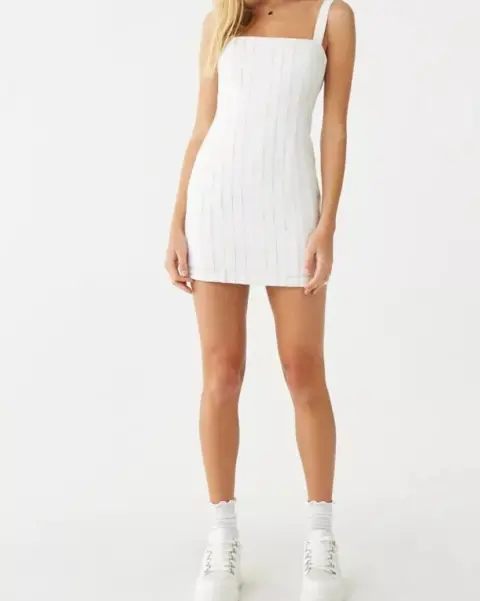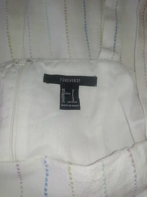 Vestido forever 21. Vestido blanco con bordados de líneas con coloresSin detalles en perfecto estadoMedidas axila - axila 41cm, Largo total 65cm, cintura 35cm70% algodón30% rayónFondo 80%poliester y 20%algodon**