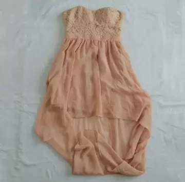 Vestido largo de la parte de atrás, corto de adelante, rosa claro, talla mediana.